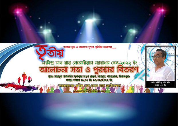 করোনা মুক্ত ও বাসযোগ্য সুন্দর পৃথিবীর প্রত্যাশায়……. প্রদীপ এন্ড সোনা রায় ফাউন্ডেশন এর উদ্যোগে ১৪-০১-২০২২ ইং তারিখে অনুষ্ঠিত হল- তৃতীয়, লক্ষীদ্র নাথ রায় মেমোরিয়াল ম্যারাথন রেস- ২০২২ ইং । উলেখ্য প্রয়াত লক্ষীন্দ্র নাথ রায় ছিলেন এলাকায় ভাল মানুষ গড়ার কারিগর। শিক্ষকতা পেশায় নিয়োজিত থেকে প্রধান শিক্ষক হিসেবে অবসর গ্রহন করেছিলেন তাড়গাঁও সরকারী প্রাথমিক বিদ্যালয় থেকে। সাহাপুর সরকারী প্রাথমিক বিদ্যালয় ও সাহাপুর উচ্চ বিদ্যালয় প্রতিষ্ঠায় তিনি ছিলেন অগ্রভাগের মানুষ। দাতা সদস্য হিসেবে সক্রিয় ছিলেন সাহাপুর উচ্চ বিদ্যালয়ের উন্নয়নে।